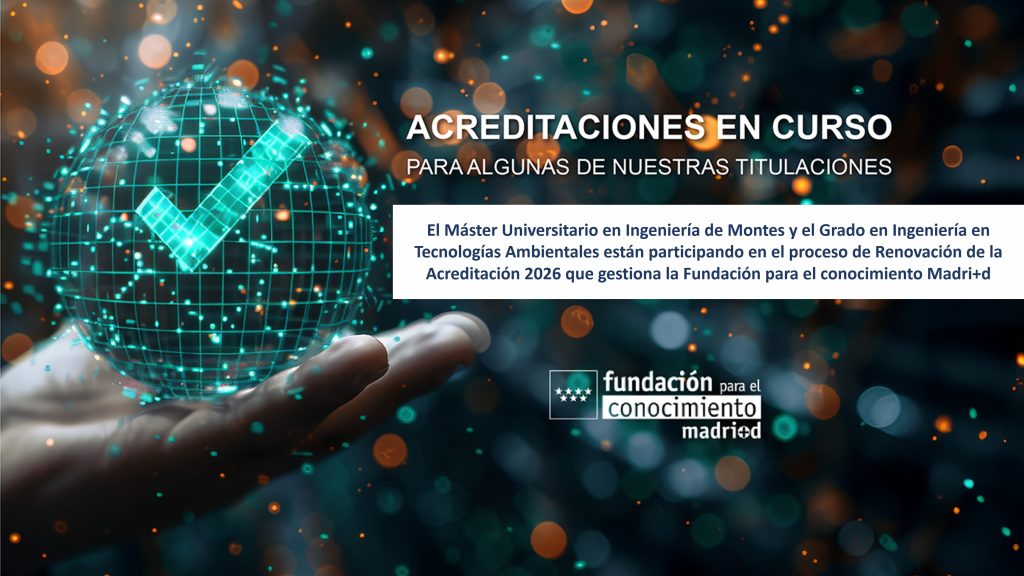 El Máster Universitario en Ingeniería de Montes y el Grado en Ingeniería en Tecnologías Ambientales están participando en el proceso de Renovación de la Acreditación 2026 que gestiona la Fundación para el conocimiento Madri+d.