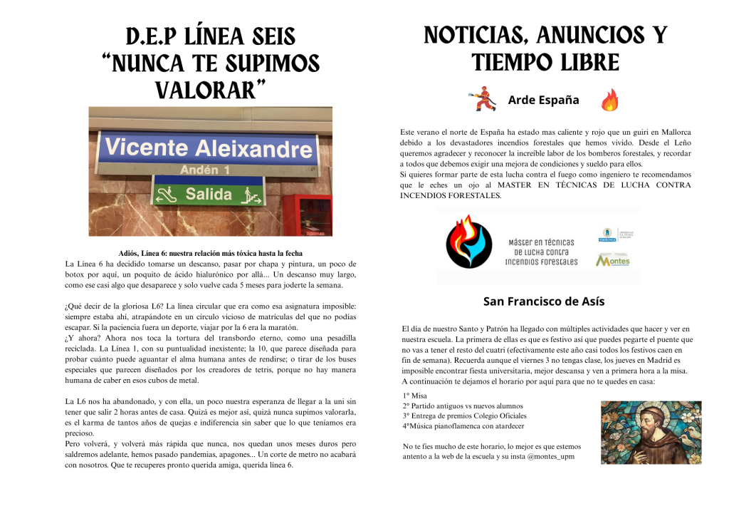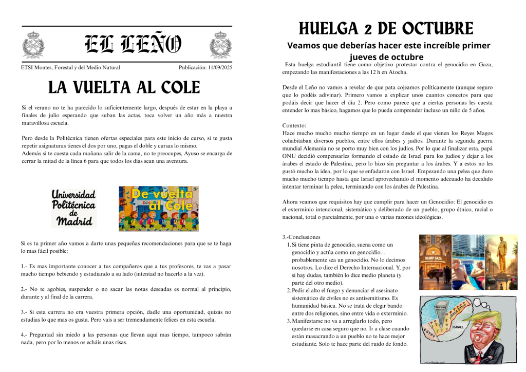 Para quienes acaban de llegar: El Leño es el “periódico estudiantil” de la ETSI Montes, Forestal y del Medio Natural.