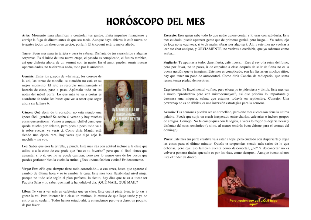 Lo hacemos entre alumnos, para contar lo que vivimos, lo que pensamos, lo que nos hace reÃr y también lo que nos cabrea y tienen la misma puntualidad que los buses especiales de la EMT.